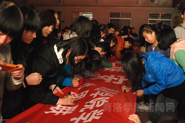 4月22日晚。我校學(xué)生自發(fā)組織祈?;顒樱瑸椤?·20”雅安地震中遇難的同胞默哀,為災(zāi)區(qū)人民祈福。