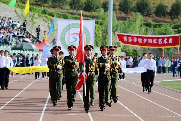 在運(yùn)動(dòng)員進(jìn)行曲中,國旗方隊(duì)、會(huì)徽及標(biāo)語牌方隊(duì)、商洛學(xué)院夕陽紅藝術(shù)團(tuán)、彩旗方隊(duì)、裁判員代表隊(duì)以及人文社會(huì)科學(xué)系代表隊(duì)等16支方隊(duì),精神飽滿,依次入場。在今年的運(yùn)動(dòng)會(huì)開幕式上,各代表隊(duì)方陣以不同的表演形式展示了各自的風(fēng)采。由我校離退休工作處組織離退休職工成立的商洛學(xué)院夕陽紅藝術(shù)團(tuán)首次在公眾前亮相,成為一大亮點(diǎn)。