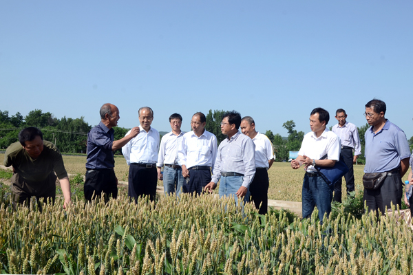 6月2日,由西北農(nóng)林科技大學(xué)教授張保軍任組長,西北農(nóng)林科技大學(xué)教授張正茂、商洛市農(nóng)業(yè)局高級(jí)農(nóng)藝師葉贇、商洛市農(nóng)科所高級(jí)農(nóng)藝師楊寶來、商洛市種子管理站高級(jí)農(nóng)藝師楊灶靈為成員的項(xiàng)目驗(yàn)收委員會(huì),冒著酷暑驅(qū)車來到“商麥5226”示范點(diǎn)洛南縣寺坡鎮(zhèn),現(xiàn)場觀摩了小麥的長勢和推廣種植情況,聽取了種植戶的評(píng)價(jià)。
