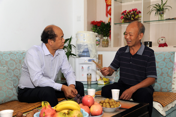 在于浩世家中,劉建林詳細(xì)了解了于浩世在小麥育種研究中取得的最新成果,并向他為學(xué)校科研服務(wù)地方工作做出的貢獻(xiàn)表示感謝。劉建林說(shuō),小麥育種工作是我校改革發(fā)展中涌現(xiàn)出的一個(gè)亮點(diǎn),今后要把這項(xiàng)工作深入持續(xù)下去,可以考慮成立商洛學(xué)院良種繁育中心。希望于老師繼續(xù)作為育種工作的帶頭人,培養(yǎng)一支精干的科研團(tuán)隊(duì),為我校的發(fā)展凝煉特色。劉建林要求生物醫(yī)藥工程系高度重視和支持此項(xiàng)工作,積極協(xié)調(diào)、解決實(shí)驗(yàn)田和實(shí)驗(yàn)室問(wèn)題,再出新成果、多出好成果。