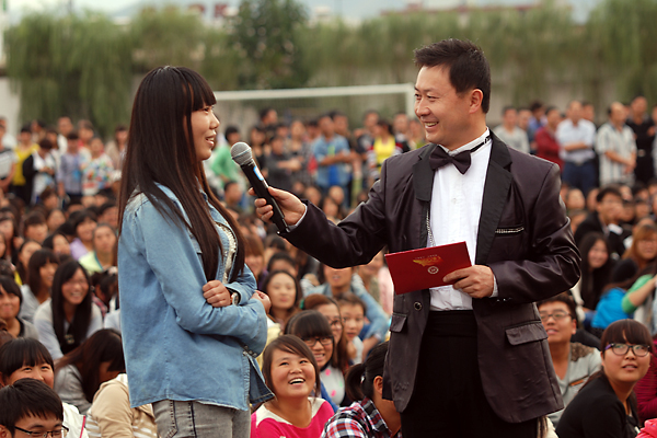 在節(jié)目中,主持人現(xiàn)場隨機采訪了兩位分別來自內蒙草原和河北承德的2013級新生。他們向現(xiàn)場師生介紹了自己的家鄉(xiāng),表達了對母校的熱愛之情。一位大二學生也登臺向學弟學妹們介紹了商洛本地名勝與特產(chǎn)。