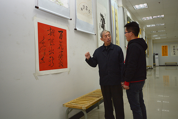 左曉民在觀看了參展作品后指出,本次展覽以書(shū)畫(huà)詩(shī)詞的藝術(shù)方式展現(xiàn)了毛澤東同志帶領(lǐng)全國(guó)各族人民開(kāi)創(chuàng)新中國(guó)偉大事業(yè)的光輝歷程,具有較強(qiáng)的思想性和較高的藝術(shù)性;對(duì)激勵(lì)我校師生以黨的十八屆三中全會(huì)為契機(jī),團(tuán)結(jié)一心,建設(shè)特色鮮明、多學(xué)科協(xié)調(diào)發(fā)展的應(yīng)用型本科院校具有積極的推動(dòng)作用。左曉民還對(duì)劉宇昭提出了殷切希望,從練就扎實(shí)基本功、注重章法和整體效果等方面給予了具體指導(dǎo)。他現(xiàn)場(chǎng)題寫(xiě)了“心沉氣靜 守拙有成”兩句話贈(zèng)送給劉宇昭,以示鼓勵(lì)。