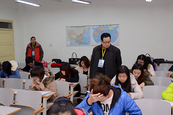 8時(shí)30分,在學(xué)院辦公室、教務(wù)處相關(guān)負(fù)責(zé)人的陪同下,校黨委書(shū)記張景書(shū)、院長(zhǎng)劉建林分別帶隊(duì)逐一視察了《大學(xué)英語(yǔ)》考試各個(gè)考場(chǎng)。每到一處,校領(lǐng)導(dǎo)都仔細(xì)察看考場(chǎng)秩序、環(huán)境衛(wèi)生,檢查考試試題、答卷進(jìn)度和學(xué)生證件等。