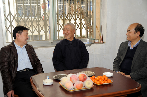在學院辦公室負責人的陪同下,張景書、劉建林一行先后前往楊含榮、劉文斌家中,和他們促膝交談,關切地詢問老同志的健康狀況和家庭、生活情況,叮囑他們保養(yǎng)好身體,為他們送上慰問金和學校師生的祝福和問候,并向老同志們介紹了學校一年來的發(fā)展建設成就。張景書、劉建林說,過去的一年里,學校各項工作取得了長足進步,這既是全體師生員工共同努力的結果,也離不開老同志們打下的堅實基礎,離不開老同志們的關心和支持。希望老同志們在保重身體的同時,一如既往地關注支持學院發(fā)展,積極建言獻策,?;貙W校看看,為學校建設發(fā)展多提寶貴意見。