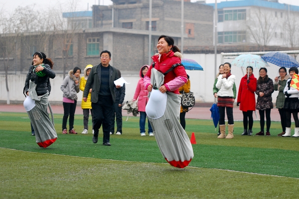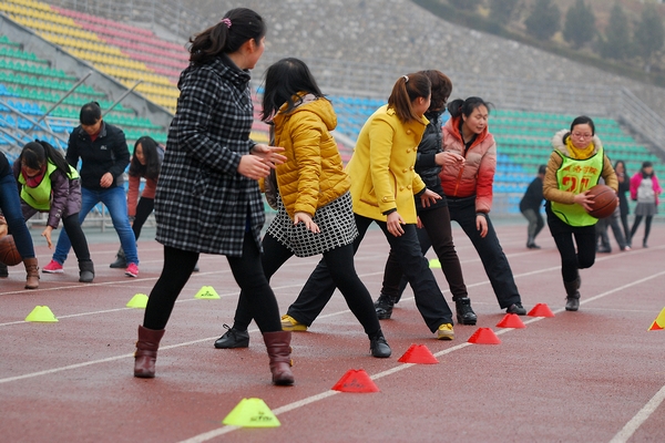 隨后舉辦的趣味運(yùn)動(dòng)會(huì)設(shè)有“海底撈月”、“袋鼠跳”、背球接力等三個(gè)集體項(xiàng)目,單人跳繩和單人踢毽兩個(gè)個(gè)人項(xiàng)目。平日里緊張工作的女教職工們放松身心,一改嚴(yán)肅的面孔,輕裝上陣,踴躍參賽。男教職工們也興致勃勃地來到活動(dòng)現(xiàn)場為女教職工們出謀劃策、加油喝彩。活動(dòng)現(xiàn)場笑聲不斷,氛圍輕松愉悅,充分展示了我校女教職工團(tuán)結(jié)、向上、開朗、活潑的風(fēng)采魅力。
