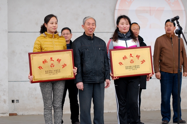 在第104個(gè)“三八”國際勞動(dòng)?jì)D女節(jié)即將到來之際,我校于3月5日下午,召開“三八”婦女節(jié)表彰會(huì)及女教職工趣味運(yùn)動(dòng)會(huì),對一年來在教學(xué)管理各項(xiàng)工作中做出突出貢獻(xiàn)的先進(jìn)女教職工集體和個(gè)人進(jìn)行表彰,以一場妙趣橫生的趣味運(yùn)動(dòng)會(huì)喜迎婦女節(jié)。校黨委副書記、工會(huì)主席左曉民出席表彰會(huì),并向獲獎(jiǎng)集體和個(gè)人頒發(fā)了獎(jiǎng)牌與證書。校工會(huì)委員、女工委員,工會(huì)各分會(huì)主席和女教職工參加了表彰會(huì)。
