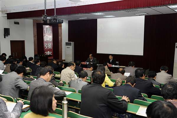為提高我校黨員領(lǐng)導(dǎo)干部的思想理論素養(yǎng)和工作水平,更好地推進(jìn)學(xué)校黨建工作和各項(xiàng)事業(yè)的發(fā)展,按照省委高教工委的部署,我校舉辦了處科級(jí)干部學(xué)習(xí)習(xí)近平總書記系列講話精神培訓(xùn)班。4月16日,培訓(xùn)班正式開班。校黨委書記張景書作了題為《黨要管黨,從嚴(yán)治黨》的首場(chǎng)專題報(bào)告。黨委副書記、校長(zhǎng)劉建林主持大會(huì)并作動(dòng)員講話。校領(lǐng)導(dǎo)王思懷、魏書堂,處科級(jí)領(lǐng)導(dǎo)干部、思想政治理論課教學(xué)研究部教師近200人參加了培訓(xùn)。