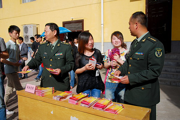 宣講結(jié)束后,張永忠、沈禮軍等人來到我校設(shè)立的各征兵宣傳點(diǎn),向在校學(xué)生發(fā)放宣傳手冊(cè),現(xiàn)場(chǎng)為同學(xué)們開展征兵政策咨詢。