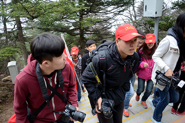 活動期間,來自16個國家的22名留學(xué)生,北京大學(xué)、清華大學(xué)、復(fù)旦大學(xué)等12所省外高校的14名學(xué)生記者,以及西安交通大學(xué)、西北工業(yè)大學(xué)、陜西師范大學(xué)等30余所省內(nèi)高校的70余名大學(xué)生記者登上太白山,參觀了銅墻鐵壁、潑墨峰、蓮花瀑布、天圓地方等景點,感受一天有四季的變化。在參觀的同時,學(xué)生記者們還就“靈動太白,尋夢青春”這一微博話題進(jìn)行互動。
