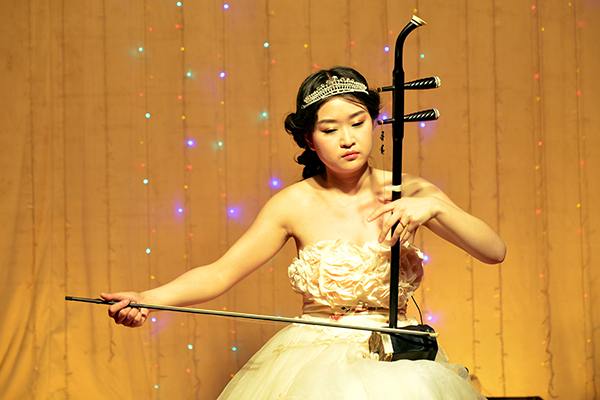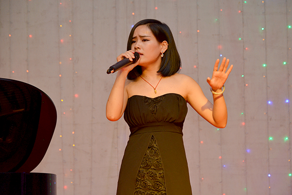 音樂學專業(yè)優(yōu)秀畢業(yè)生陳穎、竇貝貝、吳丹、強薇、郭敏、楊柳、褚瑤為大家?guī)砹司实谋硌荨!段矣H愛的爸爸》旋律優(yōu)美,演唱深情動人,描寫了少女勞萊達為追求愛情向爸爸懇求的場景;《讓我這樣看著你的樣子》生動形象地講述了巴丹公主對花木蘭這位替父從軍的假小子投入愛慕之情的故事;《揚鞭催馬運糧忙》熱情明快,富有強烈的藝術感染力;二胡表演《奔馳在千里草原》描寫了牧民在草原上奔馳的情景,抒發(fā)了對未來幸福生活的向往;歌曲《我要我們在一起》宣唱著2010級畢業(yè)生對自由對未來無限向往的心聲。