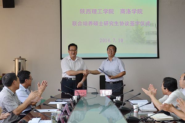 研究生教育是培養(yǎng)高層次人才的重要途徑,是國家創(chuàng)新體系的重要組成部分。為進(jìn)一步提升人才培養(yǎng)層次和水平,鍛煉碩士研究生指導(dǎo)教師隊伍,積累碩士研究生培養(yǎng)和管理經(jīng)驗,為我校申請碩士學(xué)位授予權(quán)單位奠定基礎(chǔ),7月10日,我校與陜西理工學(xué)院簽訂聯(lián)合培養(yǎng)碩士研究生協(xié)議。這是我校首次與兄弟高校簽訂合作協(xié)議聯(lián)合培養(yǎng)碩士研究生,校長劉建林、副校長魏書堂,陜西理工學(xué)院研究生處處長雷勇、科技處處長胡儀元出席簽字儀式。魏書堂與雷勇分別代表雙方在協(xié)議書上簽字。儀式由干部人事處處長高榮發(fā)主持。