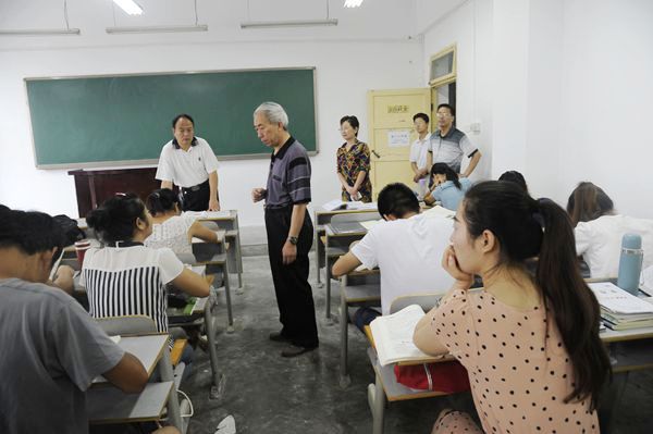 左曉民一行先后前往綜合樓教室、報(bào)告廳,向留??佳械耐瑢W(xué)詢問了復(fù)習(xí)的情況,征求了同學(xué)們的意見和建議。他指出,同學(xué)們放棄假期回家團(tuán)聚和休閑、娛樂的時(shí)間,冒著酷暑和高溫留校緊張的學(xué)習(xí)需要很強(qiáng)的毅力,這種精神值得肯定。
