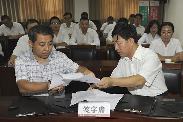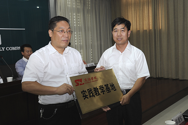 發(fā)展規(guī)劃與合作交流處處長王新軍與丹鳳電力局局長郭瑞鋒代表雙方分別在“校外實踐教學基地建設(shè)”協(xié)議書上簽字。教務(wù)處處長李超向丹鳳電力局授牌。