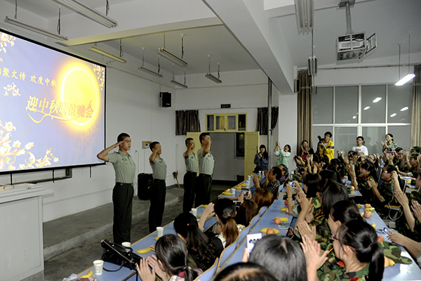 中秋團(tuán)圓夜,商院共此時(shí)。一年一度的中秋佳節(jié)來(lái)臨,為了豐富2014級(jí)新生的軍訓(xùn)生活,9月8日晚,我校各學(xué)院紛紛舉辦新生中秋聯(lián)誼晚會(huì)。校黨委副書記左曉民,學(xué)生處處長(zhǎng)石啟英走進(jìn)晚會(huì)現(xiàn)場(chǎng),并代表學(xué)校向全體師生和軍訓(xùn)教官致以節(jié)日的問(wèn)候。