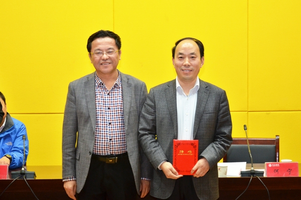 10月24日下午,商洛學(xué)院與陜西理工學(xué)院“聯(lián)合培養(yǎng)研究生”碩士生導(dǎo)師聘任儀式及學(xué)術(shù)報告會在我校圖書館二樓報告廳舉行,我校13名教師受聘為陜西理工學(xué)院碩士研究生導(dǎo)師。陜西理工學(xué)院校長何寧出席聘任儀式,并為受聘教師頒發(fā)聘書。校黨委副書記左曉民出席聘任儀式,代表我校向陜西理工學(xué)院贈送紀念品。陜西理工學(xué)院研究生處副處長楊科宣讀聘任決定。聘任儀式由副校長魏書堂主持。