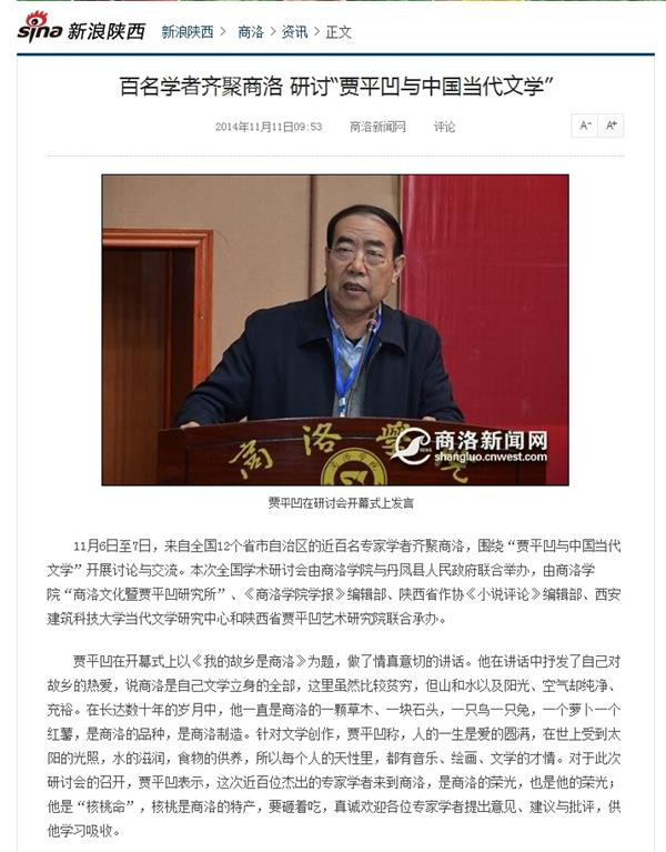 三秦網(wǎng):《近百學(xué)者商洛研討“賈平凹與中國當(dāng)代文學(xué)”》