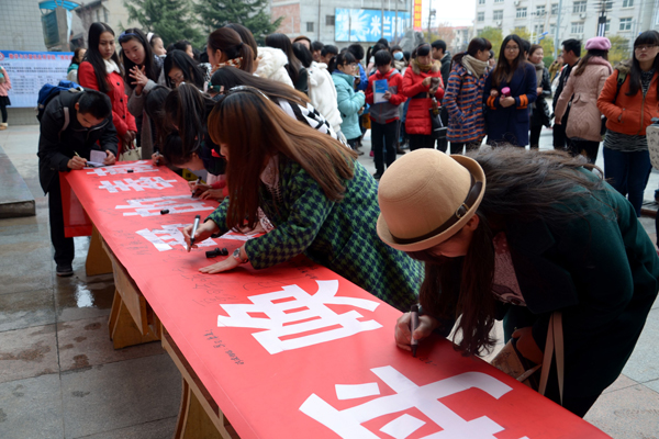 三五塊、十多塊、數(shù)百塊,都承載著師生們對王珍琪的鼓舞與祝福匯聚到募捐箱中。師生們還紛紛在活動橫幅上寫下了“樹立信心,堅強面對”“戰(zhàn)勝病魔,早日康復(fù)”等一句句祝福的話語。一時間,愛的暖流匯聚整個校園。
