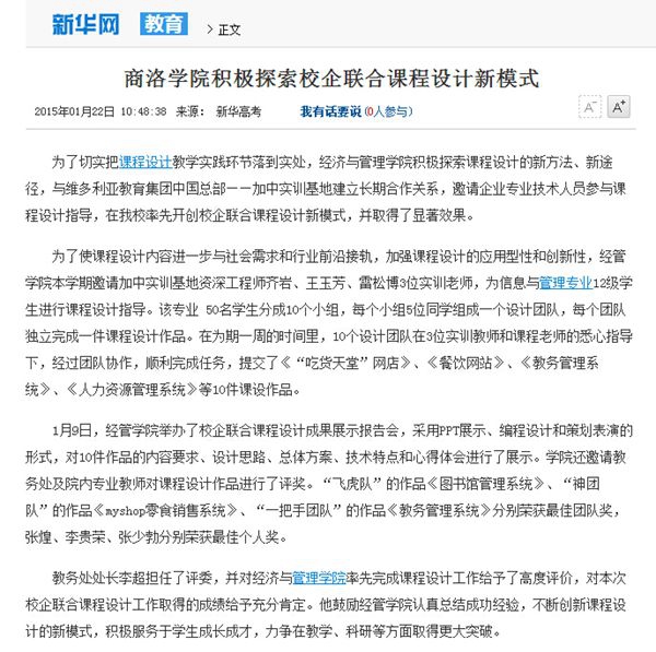 商洛學院積極探索校企聯(lián)合課程設計新模式-教育頻道-新華網(wǎng)