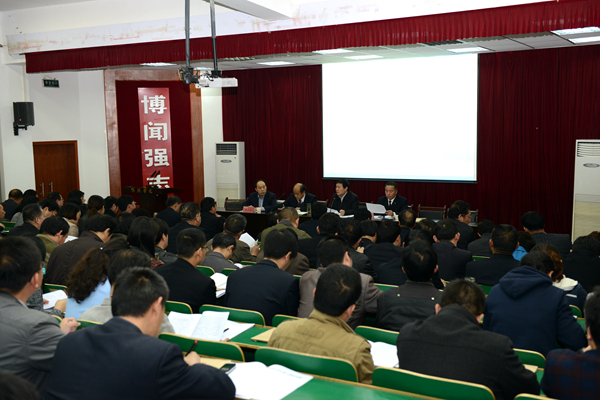 張景書指出,習(xí)近平總書記來陜視察重要講話全面而深刻地闡述了事關(guān)我省發(fā)展全局和長遠(yuǎn)的一系列重大問題,集中體現(xiàn)了對陜西發(fā)展的關(guān)心重視和對家鄉(xiāng)人民的深厚感情,為我們當(dāng)前主動適應(yīng)經(jīng)濟社會發(fā)展新常態(tài)、深化高等教育領(lǐng)域綜合改革、全面加強高校黨的建設(shè)指明了方向,提供了遵循。要認(rèn)真學(xué)習(xí)領(lǐng)會習(xí)近平總書記在講話中提出的“五個扎實”的深刻內(nèi)涵和核心要義,把思想和對工作的認(rèn)識統(tǒng)一到習(xí)近平總書記重要講話的精神上來,認(rèn)清我們面臨的形勢和任務(wù),認(rèn)清我們肩負(fù)的歷史使命,認(rèn)清我們的責(zé)任擔(dān)當(dāng),從中汲取政治營養(yǎng),明確前進方向,激發(fā)內(nèi)生動力,把學(xué)習(xí)轉(zhuǎn)化成我們奮發(fā)工作、銳意進取、攻堅克難的強大力量。要認(rèn)真按照“五個扎實”要求,結(jié)合學(xué)校實際扎實推進我校改革發(fā)展工作。