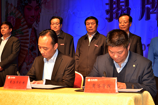 3月31日晚,由我校與商洛市劇團聯(lián)合成立的商洛學院戲曲學院揭牌儀式在市劇團小劇場隆重舉行。我校80屆校友、陜西省政府副秘書長、省政府機關事務局局長孟軍,商洛市政府副市長劉榮賢出席揭牌儀式,共同見證這一校地合作的盛事。我校黨委書記張景書、商洛市文廣新局局長周云岳為戲曲學院揭牌,我校副校長范新會、商洛市劇團團長李小斌簽署聯(lián)合成立商洛學院戲曲學院協(xié)議書,商洛市文廣新局局長周云岳代表鑒證方在協(xié)議書上簽字。揭牌儀式由校紀委書記王思懷主持。