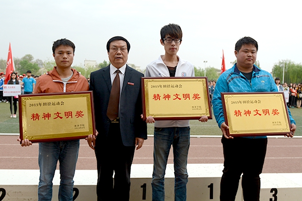 4月17日下午,我校2015年田徑運動會圓滿落幕。校領導張景書、王思懷、魏書堂及校內(nèi)各單位負責人出席了閉幕式。校黨委副書記彭虎軍致閉幕詞。副校長劉寶盈主持閉幕儀式。