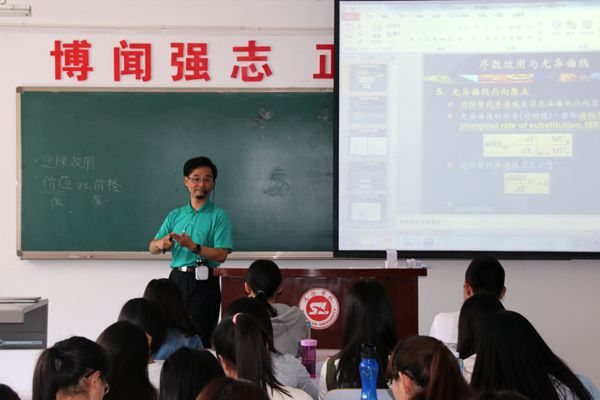 林我崇博士主講《經(jīng)濟(jì)學(xué)》課程。他幽默風(fēng)趣,講授知識時要求同學(xué)們結(jié)合自身經(jīng)歷思考問題,以學(xué)生為主體,其獨(dú)特的教學(xué)方式令學(xué)生耳目一新。