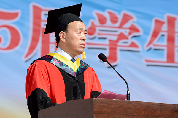 7月1日,我校舉行2015屆學(xué)生畢業(yè)典禮暨學(xué)士學(xué)位授予儀式。2615名畢業(yè)生奔赴祖國各地,開始人生新的征程。校黨委書記張景書、校長劉建林、紀(jì)委書記王思懷、副校長魏書堂、黨委副書記彭虎軍、副校長范新會(huì)、副校長劉寶盈出席,各院(部)黨政負(fù)責(zé)人、相關(guān)職能部門負(fù)責(zé)人、2015屆畢業(yè)生及輔導(dǎo)員、學(xué)生家長代表參加了畢業(yè)典禮。畢業(yè)典禮由彭虎軍主持。