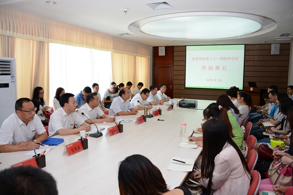 校長劉建林在開班典禮上代表學(xué)校黨政和全體師生員工對(duì)新入職的教師們表示熱烈的歡迎。他指出,新加入商洛學(xué)院這個(gè)大家庭的教師們,要通過培訓(xùn),逐步對(duì)商洛學(xué)院的歷史、發(fā)展和現(xiàn)狀做到熟悉、了解、認(rèn)知和認(rèn)同,盡快融入學(xué)校并為之貢獻(xiàn)自己的力量。劉建林對(duì)新入職教師提出了3點(diǎn)要求:一是要做好角色的轉(zhuǎn)換,從基本的教學(xué)技能做起,做好教師的本職工作,站穩(wěn)講壇,做好教育教學(xué)研究;二是要認(rèn)同學(xué)校的價(jià)值取向,從了解、熟知、認(rèn)同到自覺踐行學(xué)校的核心價(jià)值體系,并將其內(nèi)化為自身的價(jià)值體系;三是要確定自己的目標(biāo),在學(xué)校的平臺(tái)上使自己很好的成長,將自身的發(fā)展融入學(xué)校改革發(fā)展的大潮中,為學(xué)校做出應(yīng)有的貢獻(xiàn)。
