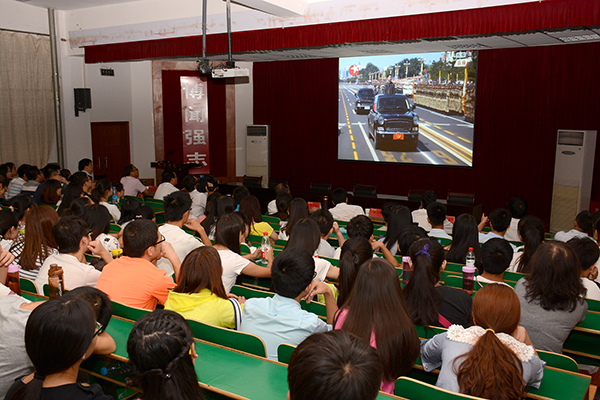 9月3日,中國人民抗日戰(zhàn)爭暨世界反法西斯戰(zhàn)爭勝利70周年紀(jì)念大會在北京隆重舉行。校領(lǐng)導(dǎo)與師生們一同觀看紀(jì)念活動(dòng)實(shí)況,見證這一舉世矚目的歷史時(shí)刻,共同祝愿偉大祖國繁榮昌盛。