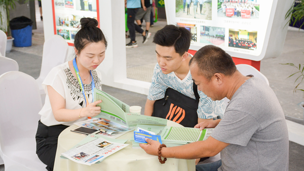 作為參展高校之一,我校精心搭建展位,集中向社會各界展示辦學(xué)成果,并向高考考生及家長提供報考咨詢服務(wù)。我校展位以“自強不息 止于至善”的大學(xué)精神為設(shè)計理念,以紅色為主色調(diào),將?;招S?xùn)等文化標(biāo)識融入其中,充分展示學(xué)校深厚的文化底蘊。LED大屏播放2019年校園宣傳片《商院人的一天》,真實展現(xiàn)商院學(xué)子積極向上、奮發(fā)有為的求學(xué)時光;首次采用的燈箱式圖文展板與極具特色的科技成果實物展相互呼應(yīng),全面展現(xiàn)學(xué)校在教育教學(xué)、一流專業(yè)建設(shè)、國際交流、創(chuàng)新創(chuàng)業(yè)、科學(xué)研究等多方面取得的豐碩成果和近年的招生就業(yè)情況。展廳還設(shè)置了咨詢臺,14名工作人員堅守崗位,為考生和家長介紹最新的招生情況、分發(fā)相關(guān)宣傳資料,面對面提供個性化志愿填報咨詢服務(wù),獲得了考生和家長的一致歡迎和廣泛贊許。