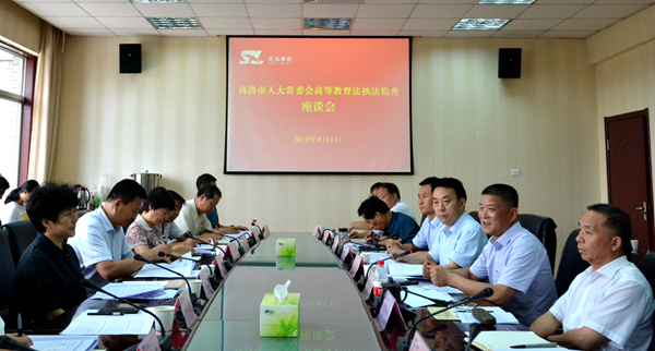 8月1日,商洛市人大常委會(huì)副主任劉淑慧率省市人大代表、相關(guān)單位負(fù)責(zé)人組成的檢查組,來我校開展高等教育執(zhí)法檢查工作。商洛市人民政府副市長李華,我校校長范新會(huì)、紀(jì)委書記王思懷、黨委副書記彭虎軍,副校長劉寶盈、劉勇出席匯報(bào)座談會(huì)。