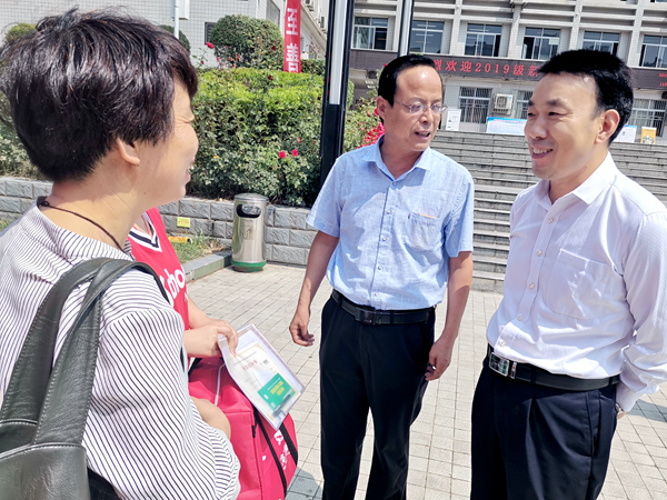 9月2日,天高氣爽,微風(fēng)徐徐,我校2019級新同學(xué)陸續(xù)來校報到。學(xué)校迎新工作部門早早準備到位,師生按照迎新分工,展開熱情的雙臂忙碌而有序地迎接新生及家長到來。下午,黨委書記龍治剛、校長范新會、黨委副書記彭虎軍、副校長劉勇也到迎新現(xiàn)場親切看望新生及家長,為他們送上關(guān)心與關(guān)愛。
