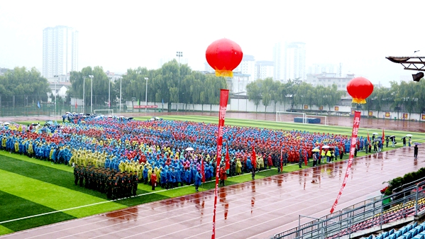 金秋九月,秦嶺蒼莽,丹水蕩漾。9月28日上午,我校2020級(jí)學(xué)生開(kāi)學(xué)典禮暨軍訓(xùn)動(dòng)員大會(huì)在學(xué)校體育場(chǎng)隆重舉行。校黨委書(shū)記龍治剛、校長(zhǎng)范新會(huì)、黨委副書(shū)記劉勇,黨委副書(shū)記、紀(jì)委書(shū)記、監(jiān)察專員曹淵、副校長(zhǎng)劉寶盈、副校長(zhǎng)王新軍,商洛軍分區(qū)動(dòng)員處處長(zhǎng)、商洛市人民政府征兵辦公室副主任周武強(qiáng)上校,武警商洛支隊(duì)參謀長(zhǎng)、2020級(jí)新生軍訓(xùn)團(tuán)團(tuán)長(zhǎng)耿小民中校,化學(xué)92屆校友、北京校友分會(huì)會(huì)長(zhǎng)、北京龍門(mén)育才學(xué)校校長(zhǎng)馬良竹出席大會(huì)。二級(jí)學(xué)院(部)黨政主要負(fù)責(zé)人及有關(guān)職能部門(mén)主要負(fù)責(zé)人,2020級(jí)全體新生參加大會(huì)。大會(huì)由劉勇主持。