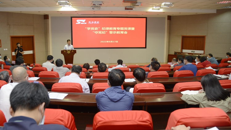 為進(jìn)一步貫徹落實(shí)習(xí)近平總書記在黨史學(xué)習(xí)教育動(dòng)員大會(huì)上的重要講話精神,扎實(shí)落實(shí)中央紀(jì)委、省紀(jì)委五次全會(huì)安排部署,引導(dǎo)廣大黨員干部堅(jiān)定理想信念、強(qiáng)化紀(jì)律意識(shí),推動(dòng)我校全面從嚴(yán)治黨向縱深發(fā)展,根據(jù)學(xué)校第四個(gè)“紀(jì)律教育學(xué)習(xí)宣傳月”活動(dòng)安排,6月17日,我校召開了“學(xué)黨史” 紀(jì)律教育專題黨課暨“守黨紀(jì)”警示教育大會(huì)。校長(zhǎng)范新會(huì),黨委副書記彭虎軍、劉勇,副校長(zhǎng)王新軍、郭瑾出席會(huì)議。全體副處級(jí)以上干部參加會(huì)議。會(huì)議由劉勇主持。