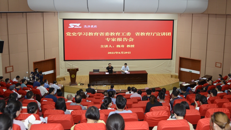 為進(jìn)一步推動(dòng)我校黨史學(xué)習(xí)教育扎實(shí)有序開展,營(yíng)造“學(xué)黨史、悟思想、辦實(shí)事、開新局”的濃厚氛圍,6月29日,我校邀請(qǐng)陜西省委教育工委、省教育廳黨史學(xué)習(xí)教育宣講團(tuán)成員、西北政法大學(xué)馬克思主義學(xué)院院長(zhǎng)魏奇教授來校,為師生作了題為《從黨史學(xué)習(xí)中汲取民族復(fù)興的力量》的宣講。省委黨史學(xué)習(xí)教育第十三巡回指導(dǎo)組組長(zhǎng)、商洛市人大常委會(huì)一級(jí)巡視員劉淑慧,全體校領(lǐng)導(dǎo)、處級(jí)以上黨員干部、思政課教師及師生代表400余人聽取了報(bào)告。