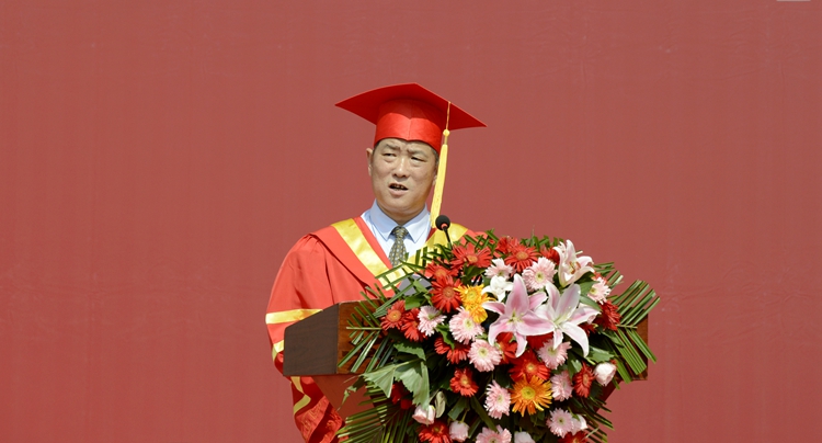 今天的典禮,既是你們的大學(xué)“畢業(yè)禮”,也是你們遠(yuǎn)行的“啟程禮”。離別之際,我以《正道直行 用奮斗點亮人生之光》為題,送給大家三句話,以此表達(dá)我和全校老師,對你們的美好祝福!