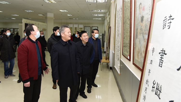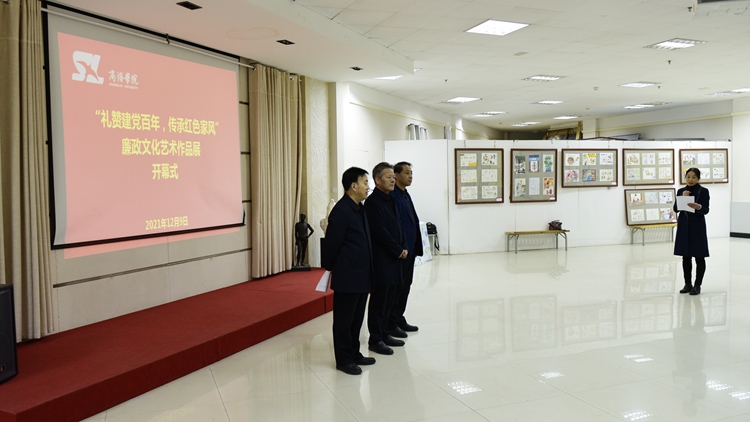 12月9日上午,由校紀(jì)委主辦、藝術(shù)學(xué)院承辦的“禮贊建黨百年,傳承紅色家風(fēng)”廉政文化藝術(shù)作品展在北新街校區(qū)圖書(shū)館五樓藝術(shù)展廳開(kāi)幕。校黨委書(shū)記張志昌,黨委副書(shū)記彭虎軍,副校長(zhǎng)王新軍、劉寶盈出席開(kāi)幕式并參觀作品展。各職能部門(mén)負(fù)責(zé)人、二級(jí)學(xué)院(部)黨政負(fù)責(zé)人以及藝術(shù)學(xué)院師生代表參加了開(kāi)幕式。開(kāi)幕式由紀(jì)委副書(shū)記田小莉主持。