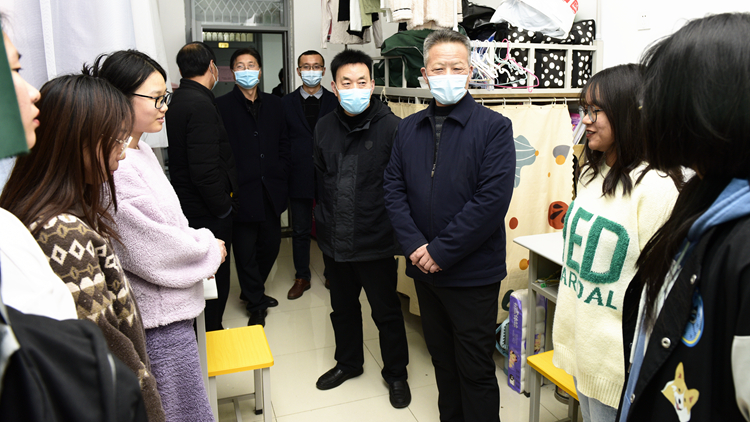 12月21日至23日,校黨委書記張志昌、校長范新會(huì)、黨委副書記彭虎軍、副校長王新軍分別深入北新街和丹江校區(qū),走訪學(xué)生宿舍,了解在校學(xué)生的學(xué)習(xí)生活需求,現(xiàn)場檢查指導(dǎo)疫情防控、師生生活保障及研究生招生考試準(zhǔn)備工作。