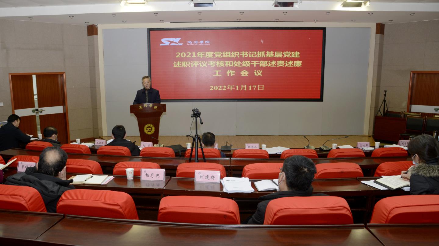 1月17日,我校采取線上線下相結合的方式召開2021年度黨組織書記抓基層黨建述職評議考核和處級干部述職述廉工作會議,聽取各黨總支、直屬黨支部書記履行抓基層黨建工作職責情況述職及處級干部述責述廉。全體校領導出席現(xiàn)場會議。校黨委委員,紀委委員參加現(xiàn)場會議。8名黨總支(直屬黨支部)書記及6名處級干部進行現(xiàn)場述職。其余8個黨總部、直屬黨支部書記及68名處級干部人員采取書面形式述職和述責述廉?,F(xiàn)場會議由黨委副書記彭虎軍主持。