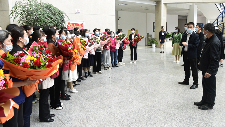 下午,范新會(huì)前往圖書館,看望榮獲陜西省教科文衛(wèi)體系統(tǒng)五一巾幗標(biāo)兵崗的圖書館全體女教職工,為女教職工們送上鮮花。范新會(huì)在講話中指出,感謝各位女職工在崗位上的辛勤付出,希望大家?guī)е@份榮譽(yù)和責(zé)任,以更加飽滿的精神,更加昂揚(yáng)的斗志,展現(xiàn)巾幗不讓須眉的擔(dān)當(dāng)精神。