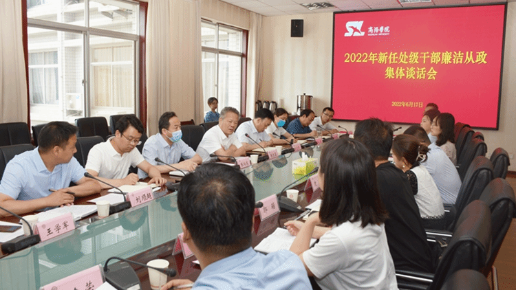 6月17日下午,我校召開(kāi)新任處級(jí)干部廉潔從政集體談話(huà)會(huì),對(duì)新任處級(jí)干部履職盡責(zé)、廉潔從政提出要求。校黨委書(shū)記張志昌出席會(huì)議并講話(huà),黨委副書(shū)記彭虎軍主持會(huì)議并作任前廉政談話(huà)。黨委委員、組織部部長(zhǎng)張向東,紀(jì)委副書(shū)記田小莉和新任處級(jí)干部參加會(huì)議。