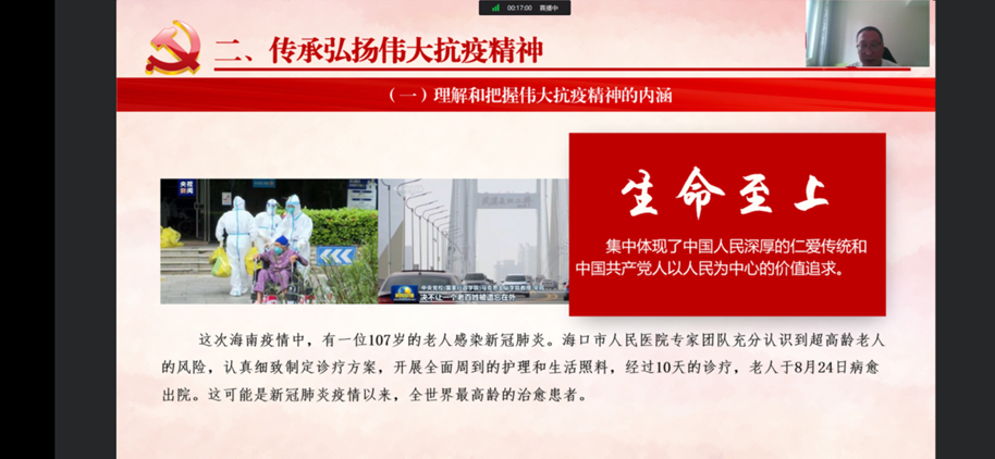 校領導的授課主題鮮明、內容豐富、深入淺出、各具特色,既有理論高度,又有思想深度。廣大學生紛紛通過在線平臺為校領導點贊,并在留言中踴躍抒發(fā)自己傳承偉大抗疫精神、勇?lián)褡鍙团d大任的信心和決心。