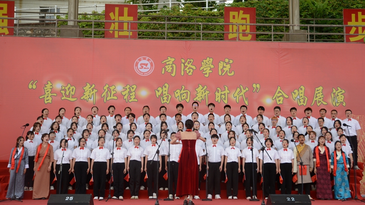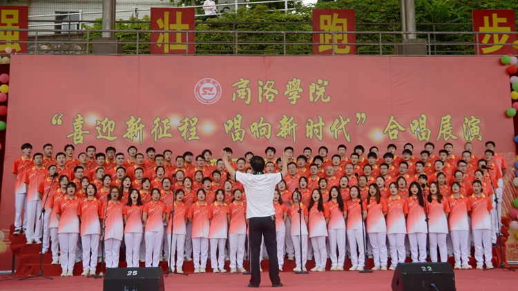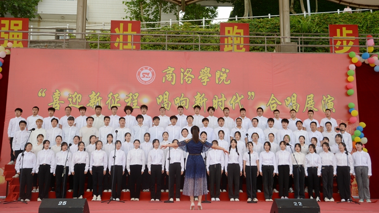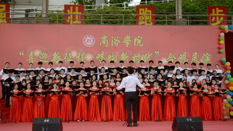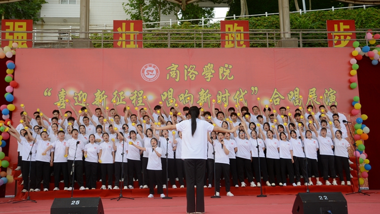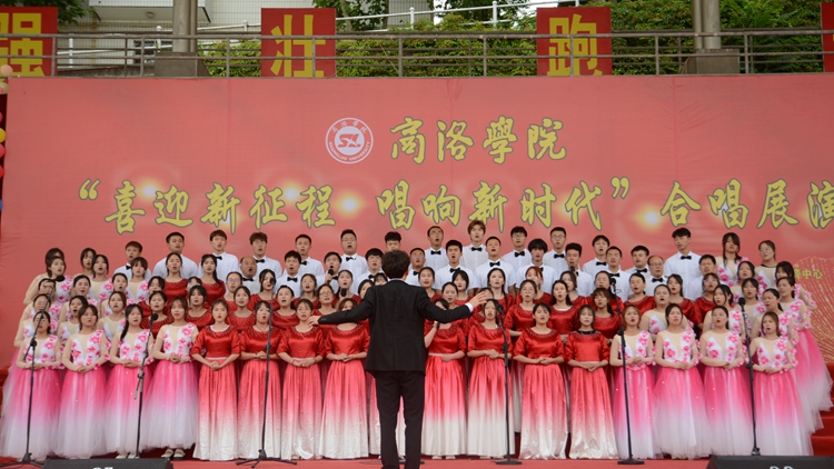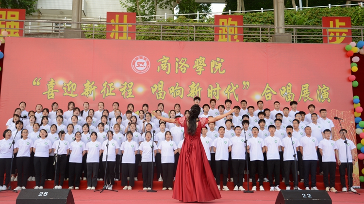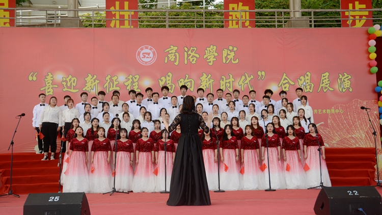 展演中,10個二級學院合唱團和教職工代表隊合唱團依次登臺亮相,傾情演繹紅色經(jīng)典曲目,用激揚的歌聲抒發(fā)愛國情懷和強國之志,充分展現(xiàn)我校師生昂揚向上的精神風貌?!陡璩鎳贰蹲呦驈团d》《我們走在大路上》《游擊隊之歌》《強軍戰(zhàn)歌》《秦嶺最美是商洛》等歌曲逐一精彩呈現(xiàn)。一曲曲高歌催人奮進,一陣陣掌聲心潮澎湃。