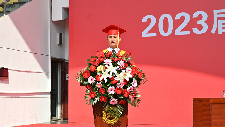 校長(zhǎng)范新會(huì)以《志存高遠(yuǎn)勇毅前行做不負(fù)時(shí)代的“追夢(mèng)人”》為題發(fā)表了情真意切的講話。他表示,在四年的大學(xué)生活中,同學(xué)們謹(jǐn)遵博聞強(qiáng)志、正道直行校訓(xùn),正心明志、立德修身,努力學(xué)習(xí)專業(yè)知識(shí),踴躍投身社會(huì)實(shí)踐,豐富了知識(shí),鍛煉了體魄,增長(zhǎng)了才干。所有同學(xué)在砥礪奮進(jìn)中共同見(jiàn)證了學(xué)校在軟科中國(guó)大學(xué)排名中的新突破,體驗(yàn)了校園環(huán)境的新提升,結(jié)識(shí)了中外合作辦學(xué)和國(guó)際創(chuàng)意課程的新同學(xué),刷新了學(xué)?!盎ヂ?lián)網(wǎng)+”大賽的最高成績(jī)。他希望全體畢業(yè)生在未來(lái)的人生路途中,牢記青年使命、矢志報(bào)效祖國(guó),不負(fù)韶華、不負(fù)時(shí)代,用青春之筆書(shū)寫(xiě)人生的華彩篇章。