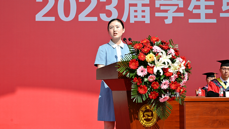 人文學(xué)院青年教師劉玉婷作為教師代表發(fā)言。她希望同學(xué)們?cè)谖磥?lái)的人生道路上心懷夢(mèng)想、不忘初心,胸有丘壑、砥礪前行,心中有光、自信自強(qiáng),跨越畢業(yè)這座里程碑后,敢于攀登人生更高峰。