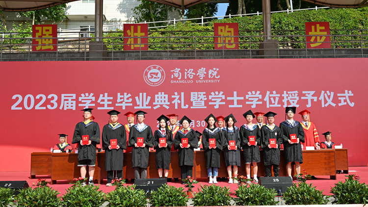 畢業(yè)驪歌起,青春將遠(yuǎn)航。6月30日上午,我校隆重舉行2023屆學(xué)生畢業(yè)典禮暨學(xué)士學(xué)位授予儀式。3324名畢業(yè)生懷揣青春的夢(mèng)想,開(kāi)啟人生新旅程。校領(lǐng)導(dǎo)張志昌、范新會(huì)、劉勇、劉寶盈、王新軍、郭瑾出席典禮。2023屆畢業(yè)生通過(guò)線上線下結(jié)合的方式,在北新街校區(qū)和丹江校區(qū)同時(shí)參與,同上大學(xué)的最后一課。典禮通過(guò)商洛學(xué)院官方微視號(hào)和抖音號(hào)全程直播。
