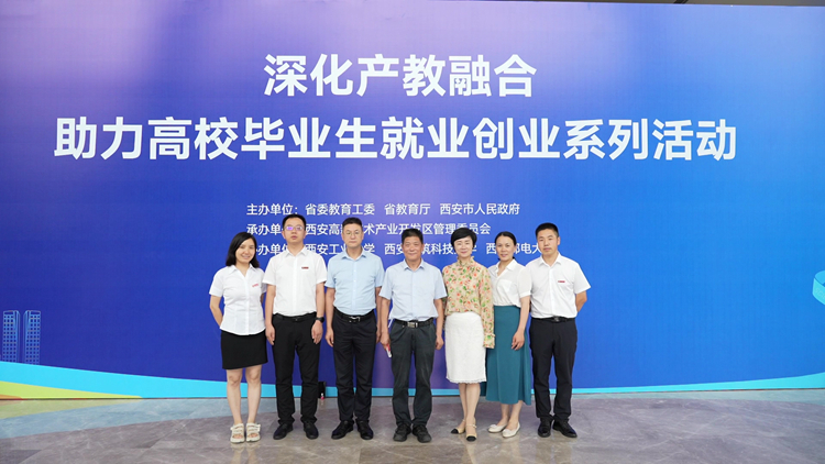 7月13日,由陜西省委教育工委、省教育廳、西安市人民政府主辦,西安高新區(qū)管委會(huì)承辦,西安工業(yè)大學(xué)、西安建筑科技大學(xué)、西安郵電大學(xué)協(xié)辦的“陜西省深化產(chǎn)教融合助力高校畢業(yè)生就業(yè)創(chuàng)業(yè)系列活動(dòng)”在西安高新區(qū)開幕。我?!半p聘院士”、中國工程院院士張生勇出席開幕式,并親臨我??萍汲晒古_(tái)參觀指導(dǎo)。校長范新會(huì)參加開幕式。