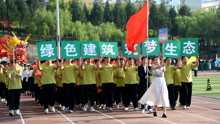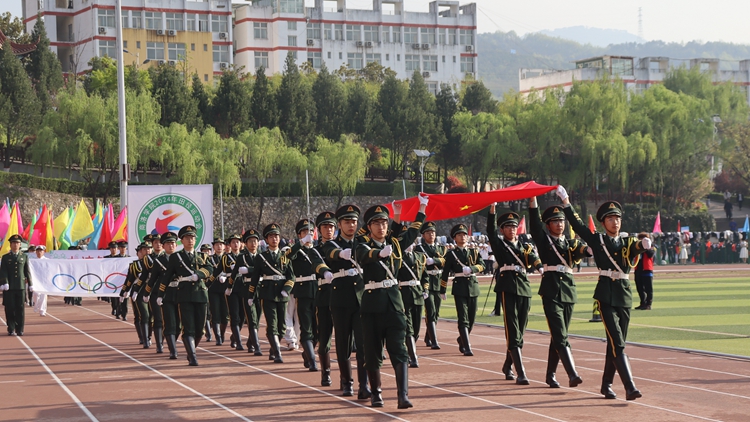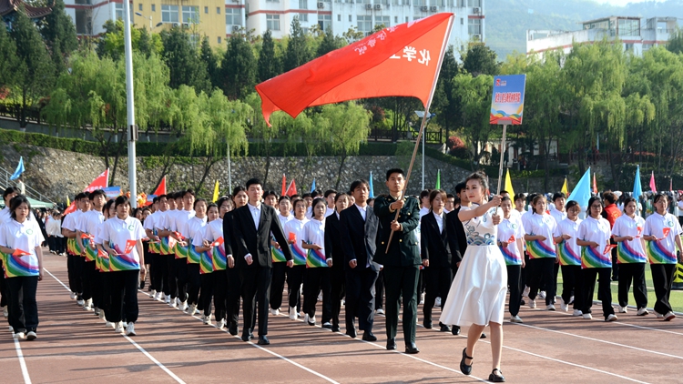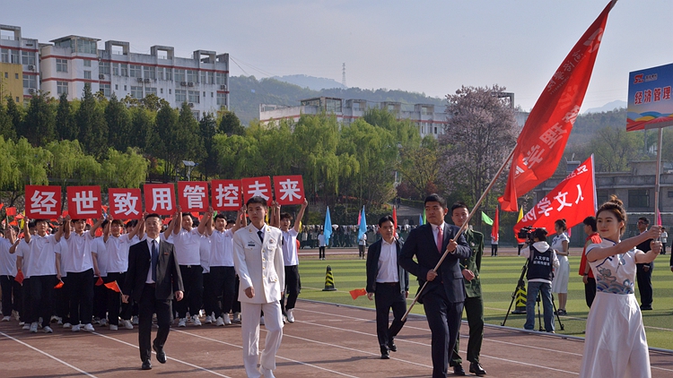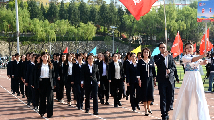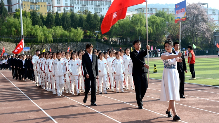 伴隨著激揚的《運動員進(jìn)行曲》,國旗護(hù)衛(wèi)隊、退役士兵方陣、彩旗方陣、花環(huán)方陣、裁判隊、各二級學(xué)院師生代表隊、附屬小學(xué)、附屬幼兒園和教職工代表組成的18個方陣邁著整齊穩(wěn)重、鏗鏘有力的步伐依次走過主席臺,展現(xiàn)了我校師生昂揚向上的精神風(fēng)貌。運動員代表楊振興、裁判員代表王蒙潔分別向大會宣誓。