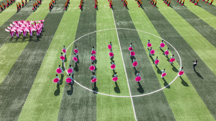在開幕式表演中,電信學(xué)院大型團(tuán)體操表演《奮進(jìn)商院 禮獻(xiàn)祖國》驚艷綻放,240位學(xué)子在靈活變化的隊形中展露出深厚的愛國愛校之情,以無畏的勇氣和不懈的追求一起邁步向未來。健康管理學(xué)院的230余名學(xué)子步伐矯健,動作輕盈,為大家?guī)砘顫娪辛Φ睦怖膊俸拖词植俦硌荩麄冇眯袆酉虼蠹以忈尳】档恼嬷B,呼吁大家參與健康生活,助力商洛“康養(yǎng)之都”建設(shè)。附屬小學(xué)的少年兒童以活潑可愛的身姿帶來舞蹈《盛世歡歌》,一起祝福祖國的明天天更藍(lán)、山更綠、水更清,經(jīng)濟(jì)更繁榮、人民更幸福、國力更強(qiáng)盛!建工學(xué)院團(tuán)體操表演以舞動的熱情撒播歡樂的陽光,用特有的創(chuàng)意和魅力展示出商院學(xué)子朝氣蓬勃的精神風(fēng)貌,通過“站起來”“富起來”“強(qiáng)起來”三個環(huán)節(jié),向在場觀眾勾勒出山河無恙、繁榮昌盛的盛世景象。