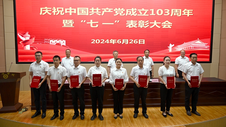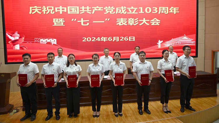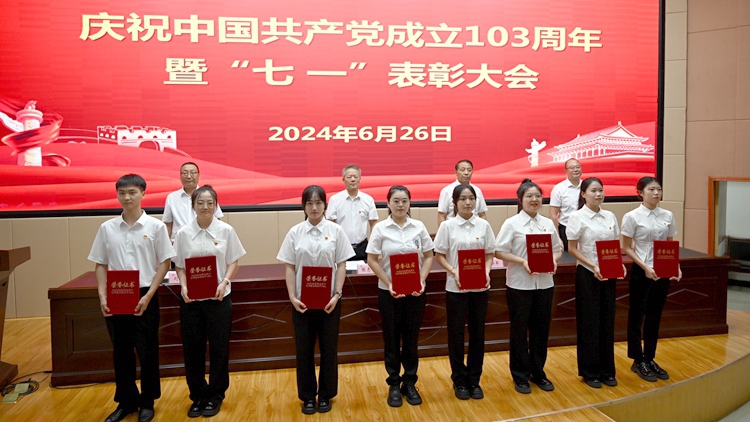 6月26日下午,我校在圖書館二樓報(bào)告廳召開慶祝中國(guó)共產(chǎn)黨成立103周年暨“七一”表彰大會(huì)。校黨委書記張志昌出席大會(huì)并講話。大會(huì)對(duì)36名優(yōu)秀共產(chǎn)黨員、15名優(yōu)秀黨務(wù)工作者、3個(gè)先進(jìn)基層黨委和13個(gè)先進(jìn)黨支部進(jìn)行表彰。黨委委員、副校長(zhǎng)劉寶盈、王新軍、郭瑾出席大會(huì)并向受表彰集體和個(gè)人代表頒發(fā)獎(jiǎng)牌證書。大會(huì)由劉寶盈主持。